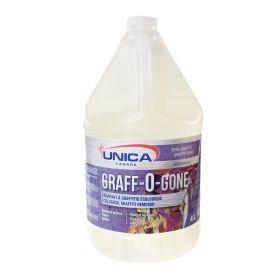 GRAFF-O-GONE est un produit spécialement conçu pour éliminer efficacement les marqueurs permanents et les peintures diverses sur toutes les surfaces lisses, peintes, la pierre et le béton. Il est composé de solvants et d’émulsifiants non moussants, pour un rinçage plus facile. Il est entièrement biodégradable et non toxique.